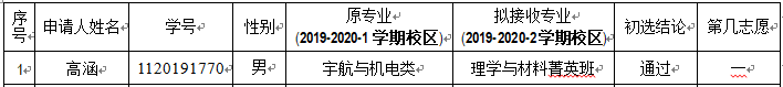 根据《bat365在线平台官网登录求是书院2019-2020学年第二学期本科生转专业实施细则》,经本人申请、资格审查、面试考核,现将求是书院2019-2020学年第二学期接收转专业学生初选结果公示如下: