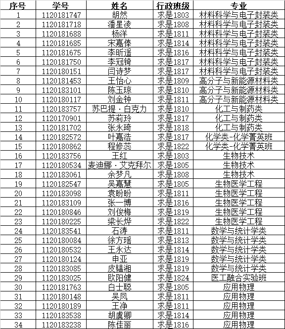 现将拟获得2019-2020学年国家奖学金、国家励志奖学金的同学名单进行全校范围内的公示,公示期为2020年9月29日至2020年10月8日。单位或个人均可以通过来电、来信、来访对公示人员的有关情况进行反映,也可以直接到求是书院办公室(良乡至善园B208)当面反映情况。名单如下: