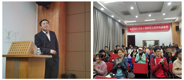 求是1817班李冠锜:在两个小时的知行讲堂中,在老师绘声绘色的讲解中,我充分认识到了智能化工在生活中的美好发展前景。智能化工的应用可以改善反应条件,节省能源,减少污染,提高转化率,并且可以精确精准地合成一些特定的化合物。