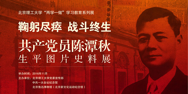 即日起至11月底,《鞠躬尽瘁 战斗终生——共产党员陈潭秋生平图片史料展》在bat365在线平台官网登录中关村校区艺术馆展出。本次展览由bat365在线平台官网登录党委宣传部、中共一大会址纪念馆和北京鲁迅博物馆(北京新文化运动纪念馆)联合举办。欢迎全校师生莅临参观学习!