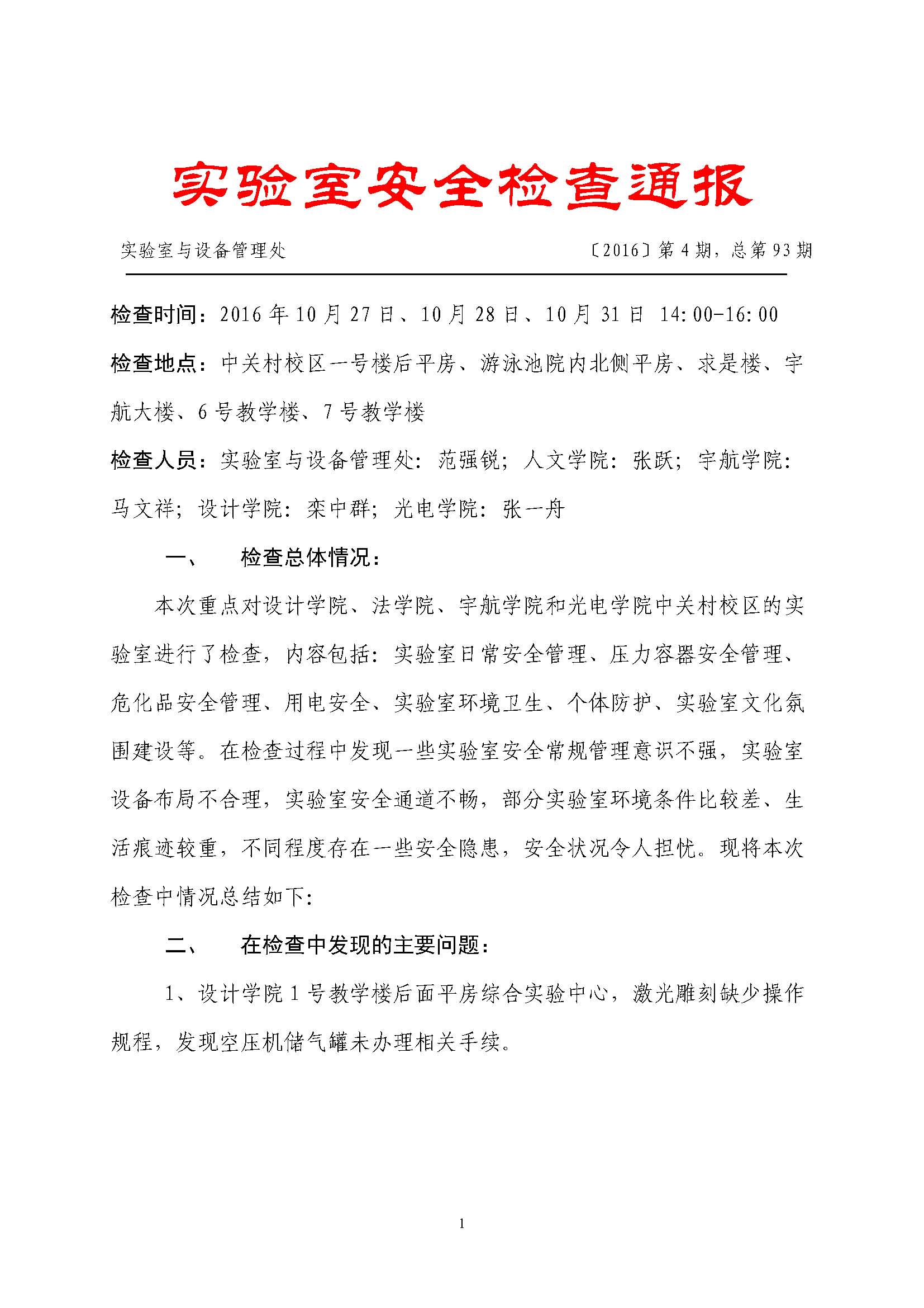 > 实验室安全检查情况通报[2016]第4期总第93期