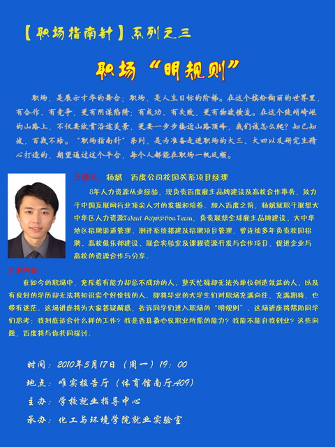 每年都会出现因毕业生不了解户口、档案等相关知识而给自己造成无法挽回的损失的情况,例如有人的档案成了“死档”,有人的户口成了“口袋户口”。离校派遣在即,学校就业办公室特别为毕业生同学举办关于就业派遣知识的专题辅导讲座。