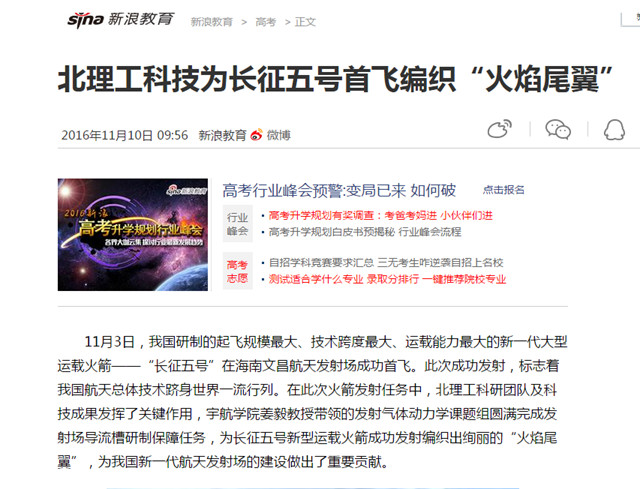 【新浪教育】北理工科技为长征五号首飞编织“火焰尾翼”