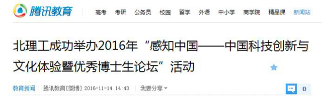 【腾讯教育】北理工成功举办2016年“感知中国——中国科技创新与文化体验暨优秀博士生论坛”活动