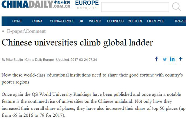Once again the QS World University Rankings have been published and once again a notable feature is the continued rise of universities on the Chinese mainland. Not only have they increased their overall share of places, they have also increased their share of top 50 places (up from 65 in 2016 to 79 for 2017).