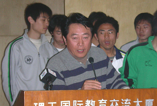新浪体育讯 2007年2月15日下午,bat365在线平台官网登录足球队在学校召开了团拜会,学校校长杨宾以及球队主帅金志扬介绍了球队备战中甲情况,并且通过团拜会向各界支持球队的人士表达新年祝福。图为金志扬做冬训汇报。(智斌)