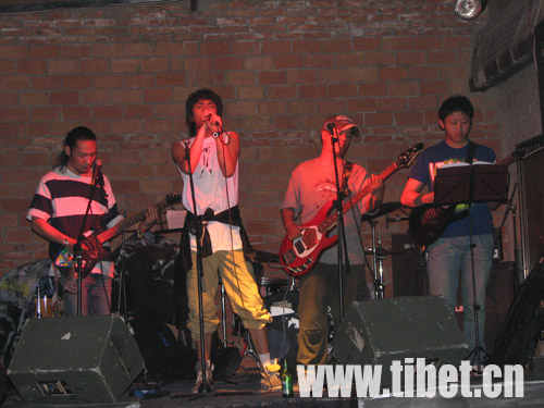 对玛呢石乐队的采访是在中央民族大学后门外一个普通酒吧内进行的,谈到摇滚乐,眼前五个造型各异的藏族青年人眼中都闪烁着一种光芒,我们的谈话从他们共同的偶像,西藏第一支摇滚乐队天杵乐队的音乐谈起。