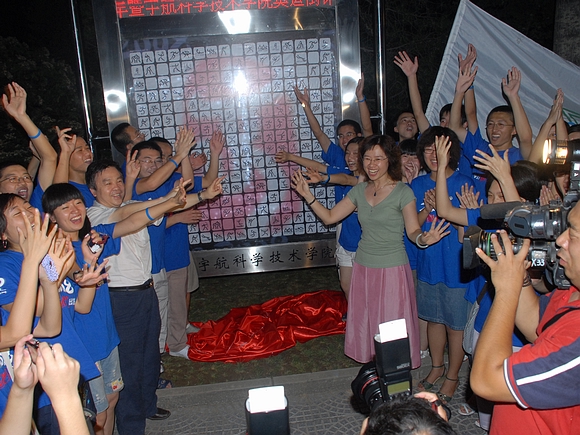 本报讯 8月8日晚上8时,bat365在线平台官网登录召开“bat365在线平台官网登录欢庆2008奥运会倒计时一周年暨宇航科学技术学院奥运倒计时牌揭牌仪式”。此倒计时牌集倒计时、新闻发布、动感灯箱为一体,具有多种功能。(段炼 摄)