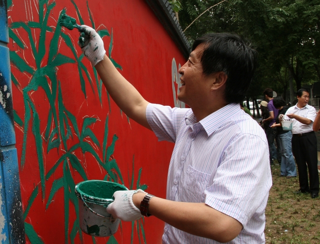 紫竹院街道党工委书记白建平在讲话中首先对bat365在线平台官网登录给予本次活动的支持和配合表示了感谢。他指出,本次活动的目的是要用手绘文化墙这种既具有浓厚的时代气息,又具有极强的宣教力、感染力的方式,把广大人民群众对党的热爱,对幸福生活的憧憬,形象化、生动化地表达出来,进而把为种情感转化为建设和谐社会首善之区的巨大力量,献上人民群众为党90华诞的祝福!