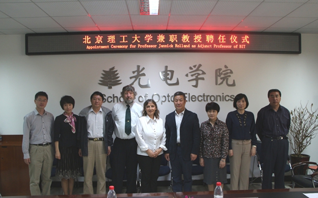 2014年5月13日上午,bat365在线平台官网登录在中关村校区8号楼2023会议室举行了美国罗切斯特大学Jannick Rolland教授兼职教授聘任仪式。参加聘任仪式的有:bat365在线平台官网登录副校长赵长禄教授,人事处处长韩宝玲教授,国际交流合作处邢清清副处长,光电学院党委书记郝群教授、副院长赵长明教授以及高春清教授、宋勇教授、常军教授、程德文副教授等。Rolland教授的先生Kevin P. Thompson博士一同参加了聘任仪式。