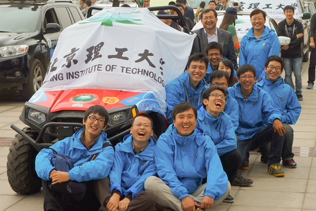 “快比赛时他们在良乡校区调试了一两个月,回来的时候我看到杨老师的胡子头发都长的很长了,而且人也瘦了不少。”一位学生如是形容指导老师杨毅。“确实,这中间团队成员吃了不少苦,但是在科学面前团队成员无怨无悔,我们追求的是更高、更强。我们来年还会继续战斗的!”赛后队员朱昊说道。辉煌的成就背后是艰辛的过程和挥洒的汗水,在研究期间,团队成员放弃寒暑假、国庆假期以及双休日,一直奋战在实验室,累了互相鼓励,困了轮流休息,一点点地攻克面前的难题。2013年全国智能车未来挑战赛, IN2BOT智能车队第二次如约参赛。这次团队派出的“特立独行号”智能车获得了城郊道路第五名,城区道路第四名,综合排名第五的成绩,并在中韩对抗赛中战胜了韩国首尔大学车队,完成了预期的任务,也算是对团队一年来的工作的一个认可。
