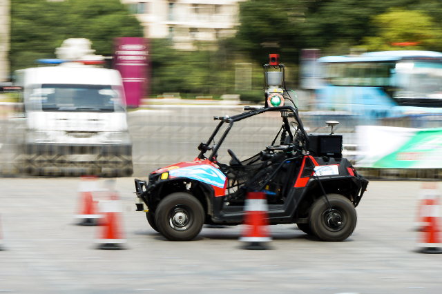2012年“中国智能车未来挑战赛”上,一辆外表奇特的智能车引起大家浓厚的兴趣,也得到了央视的特写镜头。