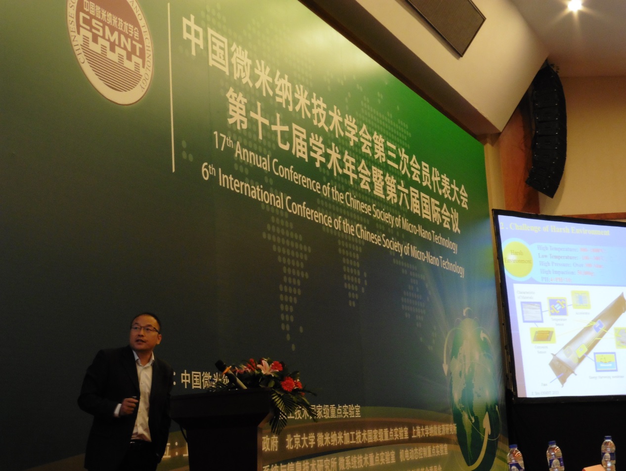 2015年10月12日,bat365在线平台官网登录机电学院娄文忠教授受中国微米纳米学会第十七届学术年会暨第六届国际年会(CSMNT2015)大会组委会特邀,在上海做题为“Microsystems Technology under Harsh Environment”的大会报告。此次大会由中国微米纳米学会主办,上海交通大学承办,海内外微米纳米相关领域的专家学者共计450人参加本次大会。其中美国佐治亚理工大学终身校董事讲席教授、中国科学院外籍院士和欧洲科学院院士王中林,美国佐治亚理工大学Naresh Thadhani教授,北京大学刘忠范院士,加拿大首席杰出科学家、阿尔伯塔大学教授、加拿大国家纳米技术研究院研究员Thomas Thundat等7位专家做了大会报告。娄文忠教授的报告得到与会海内外专家好评。