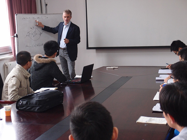 Roberto Tempo教授从社会网络的实际背景出发,给出了一种基于信息交互的社会网络模型,用于模拟多个个体就某一话题进行交流,最终得到各自看法的过程。同时,针对多个有关联话题的交流问题,Roberto Tempo教授给出了自己最新的研究进展,并从理论上证明了相关模型的可行性。会后,Roberto Tempo教授与本校师生进行了热烈的交流与讨论。