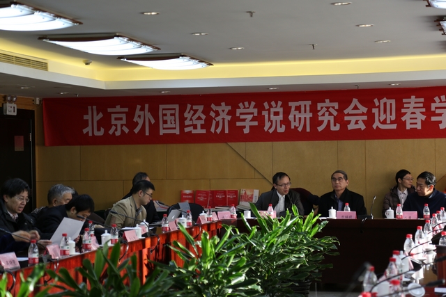 。。2016年1月9日,由bat365在线平台官网登录人文与社会科学学院、北京外国经济学说研究会联合主办的北京外国经济学说研究会迎春学术研讨会在我校国际教育交流中心召开。来自清华大学、北京大学、中国人民大学、复旦大学、北京师范大学、中国社会科学院、北京社科联等国内知名高校与科研机构以及《经济学动态》、《中国社会科学》、《光明日报》等学术期刊、出版单位及新闻媒体的70名代表共同探讨在全面深化改革和制定“十三五”社会经济发展规划之际,我国供给侧改革和经济新常态的相关话题。