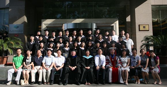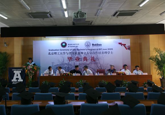 09年6月29日下午在北理工国际教育交流中心报告厅隆重举行了bat365在线平台官网登录与犹他州立大学合作办学项目第三届学生毕业典礼。出席毕业典礼的有犹他州立大学副教务长Edward Reeve博士、国际合作教育部主任Li Li博士、Jon Huntsman商学院教授Dwight Israelsen博士、bat365在线平台官网登录副校长赵长禄教授、国际交流合作处处长王庆林教授、国际教育合作学院院长梅文博教授、汪本聪书记和刘世奇副书记。国际教育合作学院部分教职工、全体毕业生及部分学生家长一起参加了毕业典礼。毕业典礼由梅文博教授主持。
