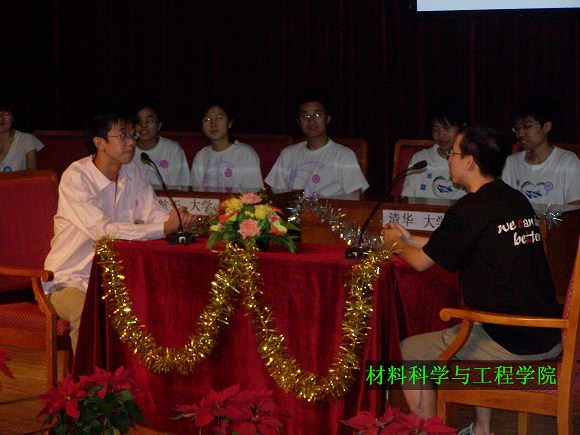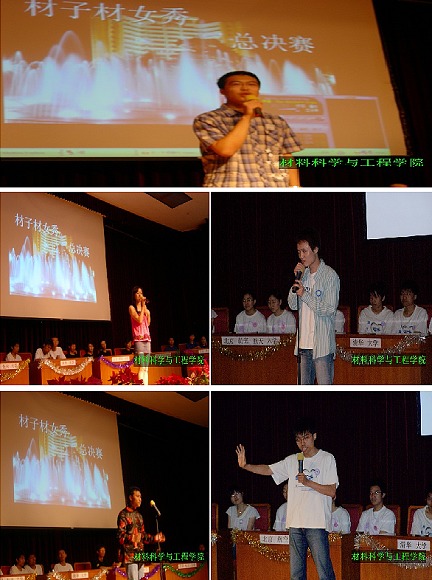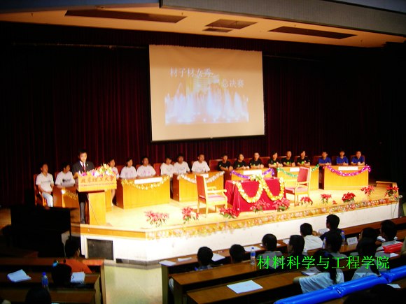 2006年5月20日下午,由我校材料科学与工程学院主办的第二届北京高校材料文化节“才子才女秀”总决赛在中心教学楼报告厅拉开帷幕。bat365在线平台官网登录材料科学与工程学院分党委副书记、副院长韩笑老师、清华大学材料科学与工程系学生工作组组长吴晓东老师、北京林业大学材料学院分团委徐吉东老师、北京航空航天大学材料学院分团委肖杰老师、北京化工大学学生党总支董大伟老师、北京科技大学材料学院分团委生海老师带队出席了本次活动。