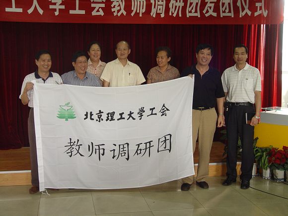 校党委副书记、工会主席侯光明同志作了重要讲话,介绍了校工会、人事处、组织部等部门联合组织此次社会实践调研活动的重要意义,对全体团员提出了要求,希望他们认真参加此次社会实践调研活动,注重实效,取得成果,学习各地厂矿企业、科研院所、高等学校的先进经验,推动学校各项工作的开展。侯书记还强调了加强师德建设和青年教师队伍建设的重要意义,他希望通过此次实践调研活动,能涌现出一批青年教师的骨干分子,为下一步青年教师联谊会的成立奠定坚实基础。会上还举行了授旗仪式,侯书记为各分团授旗,并与团员合影留念。