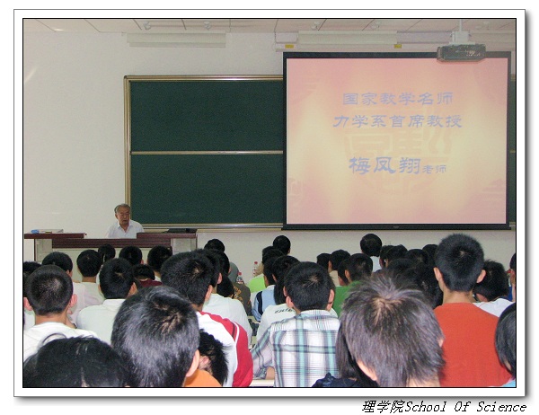 最后国家教学名师、力学系首席教授梅凤翔教授给2007级新生提出几点殷殷希望,他幽默风趣的讲话让同学们在欢笑中领略了大家风范。