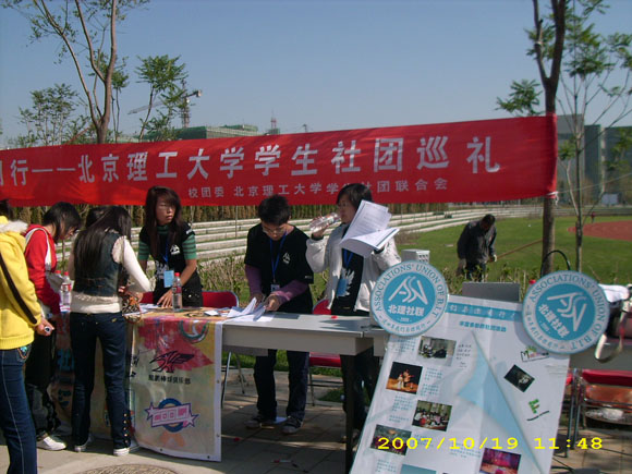 10月20日,由我校校团委、良乡校区学生管理办公室主办,学生社团联合会、校学生会、学生科协承办的学生组织巡礼及招新活动在良乡新校区南区举办,共有学生会、社团联合会、校科协、素质拓展中心、网络开拓者协会、北工青年、校学生电视台、黑白漫画社、酷爱轮滑俱乐部、无阳斋书画社、美韵英语协会及京工演讲团等40多个校级学生组织参与其中。