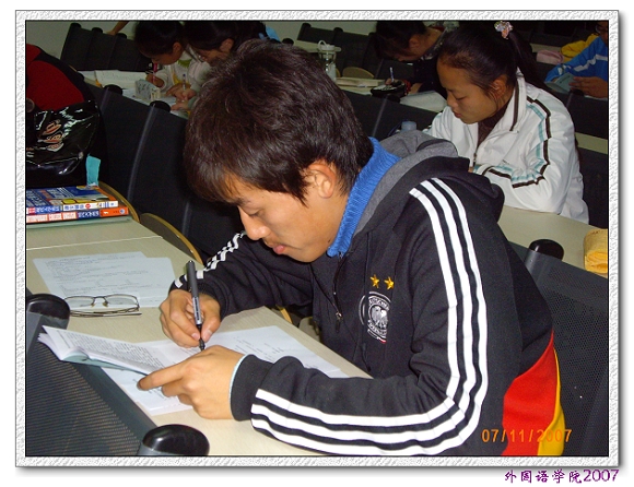 11月8日晚,外国语学院2007级英语专业在综合教学楼502进行了本科教学评估《宣传手册》的考核。英语专业所有同学均参加了此次考核。
