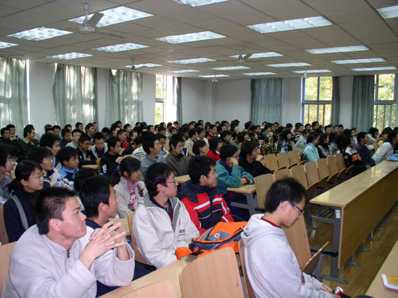 在动员会之后,杨志兵副教授又跟07级同学进行了亲切的交流,并鼓励大家尽快适应良乡校区的学习和生活情况,并预祝各位同学在期中考试中取得优良的成绩。