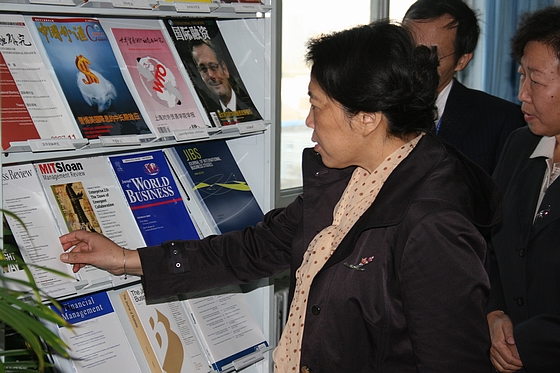 张强教授来到bat365在线平台官网登录图书馆管理与经济分馆就阅览室的藏书情况进行了考察
