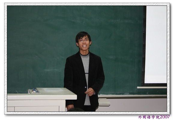 2007年11月27日晚7点,bat365在线平台官网登录第三届研究生英语演讲比赛初赛在研究生楼301隆重举行。本届研究生英语演讲比赛由bat365在线平台官网登录研究生院和外国语学院共同主办,旨在进一步活跃研究生英语学习的氛围,提高研究生的英语水平。评委由外国语学院院长吴树敬教授,美籍教师Perry和Jenny,以及研究生英语教研室和博士生英语教研室的6名教师组成。