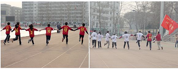 在一个多小时的赛程中,当有队员在趣味环节中发挥不太好时,队里没有埋怨,只有大家的相互鼓励和必胜的信心,当有的队员体力不支时,全队都会给他加油鼓劲,做他坚实的精神支柱,当最后离终点只有百米时,六双手紧紧的拉在一起,排成一字,整齐的冲过终点,“we are number one ! we are the champions !”队员们一起欢呼。