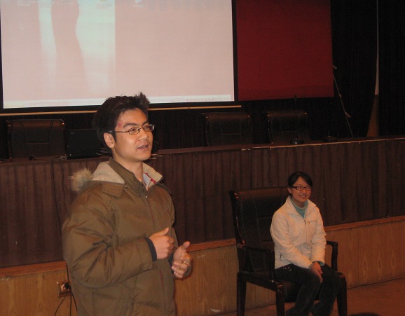 然后,我院曾参加过五棵松测试赛志愿者服务的马文韬、张倩、黄德清同学就自己的志愿者经历向大家具体介绍了在面试奥运志愿者的时候应该注意的细节,最后,与同学们一起分享了他们在做志愿者时候的视频,增进了同学们对志愿者工作的了解。