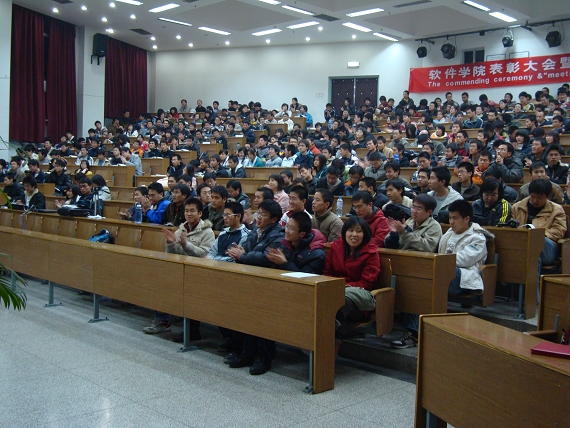 2007年12月26日,软件学院在中心教学楼317召开了软件学院表彰大会。这次大会主要是对取得2006——2007年度校级以及院级奖励的同学予以表彰。在这次大会上,院领导对于学院的各种奖励政策进行了详细的讲解,并鼓励同学们努力学习,积极参与学院的创新基地的活动,努力提高自身动手能力,为将来进入社会打下坚实的基础。同时,期末考试临近,学院领导对同学们进行了考试动员。