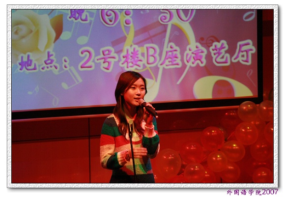 晚会在2007年bat365在线平台官网登录深秋歌会总冠军吴思嘉《红旗颂》的悠扬旋律中落下帷幕,2008年也在万种期盼中渐渐走进我们,2008年温暖的阳光催开了新的花蕾,美好的憧憬谱写出新的乐章,计算机学院和外国语学院的学子们将勇敢的挑战,成就新的伟业,铸就新的辉煌。