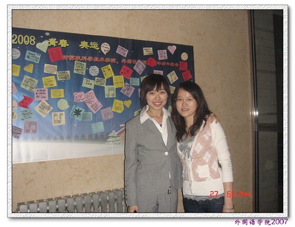 在演艺厅前,我们还设立了新年祝福墙,让参加晚会的同学们和朋友们写下2008年的祝福和愿望。