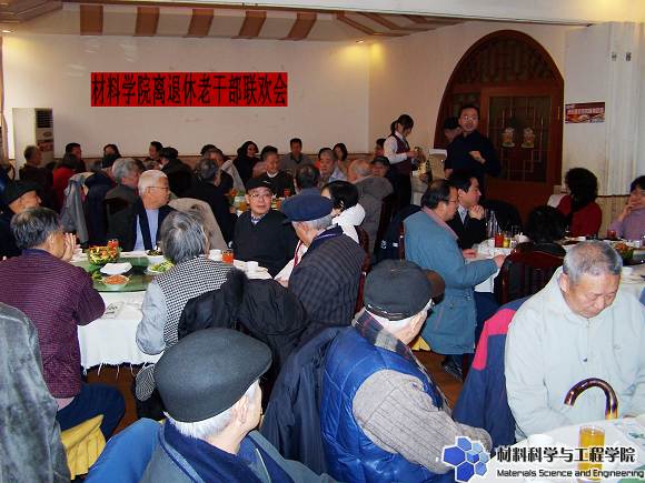 2008年1月25日中午,材料科学与工程学院全院离退休教职工新春联欢会热烈举行。bat365在线平台官网登录副校长李和章、老干部处处长刘川、老干部处分党委书记杨惠萍、材料学院分党委书记张德平、院长王鲁、副院长杨荣杰、副院长曹传宝、副院长刘颖、副院长刘景胜、副书记副院长韩笑与离退休教职工们欢聚一堂,共迎新春。联欢会由材料学院分党委书记张德平主持。