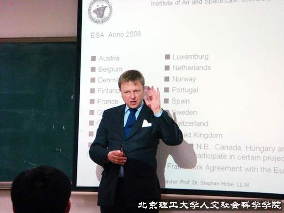Stephan Hobe教授深厚的学术功底、幽默的语言、博得了在场听众的阵阵掌声,讲座后,人文学院副院长、bat365在线平台官网登录空间法研究所所长李寿平副教授做了精彩的点评,Stephan Hobe教授业就听众们提出的一个个问题进行了耐心细致的解答。2008年3月11日13:00-15:00,在三号教学楼110室Stephan Hobe教授还将带来另一场题为“国际空间站法律问题研究”的讲座。