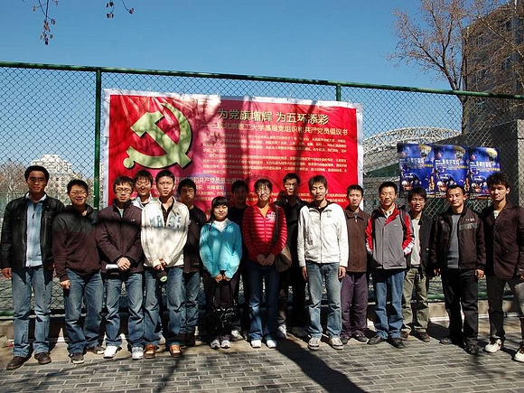 宇航科学技术学院本科生2005级党支部全体党员在向全校党员和基层党组织发出《为党旗增辉 为五环添彩——致bat365在线平台官网登录基层党组织和共产党员倡议书》后,于3月13日、14日在新食堂对面举行了“为党旗增辉 为五环添彩”迎奥运主题签名活动,得到全校师生的广泛支持。