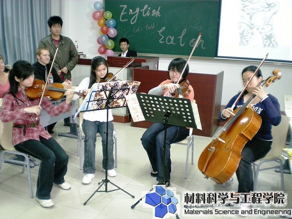 最后,主持人王谛和她的三位同学为大家演奏了四重奏,同学们都沉醉在她们带来的美妙音乐之中。英语沙龙虽然已近尾声但同学们仍然意犹未尽,从大家的欢声笑语中可以看出,本次活动举办的非常成功也很及时。同学们从中学到了许多与奥运相关的英语知识,也让同学们在紧张忙碌的学习中得到了放松和调整。材料学院的英语角和英语沙龙仍在继续举办着,相信会到良乡校区的同学们更多的关注和支持。