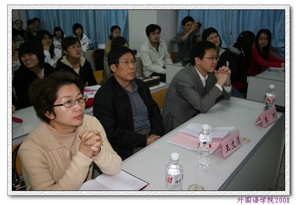 2008年4月11日,作为第三届外语文化节系列活动之一,从外语学子角度论述时事的“家事国事天下事”时事论坛活动在中心教学楼526举行。外国语学院党委书记王文清老师,党委副书记、副院长吴文君老师,分团委副书记李刚老师出席了本次活动,同时到场的还有外国语学院05、06级全体学生党员、预备党员及入党积极分子。