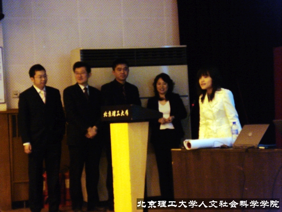 接下来进行的是由陈晗女士为我们组织的破冰游戏。在这个环节中,事先被随机分成了八组的同学们,按要求要在十五分钟内,与自己同组的同学共同协作讨论,选出一位组长,确定自己组的组名、组歌以及口号。紧迫的时间使之前还不甚熟悉的同学们都不再拘束,与大家一起分享自己的看法。随后,所有的小组轮流上台,与大家分享他们的讨论结果。同学们在游戏中找寻到了小组中的集体意识,为之后即将进行的分组讨论做好了铺垫。
