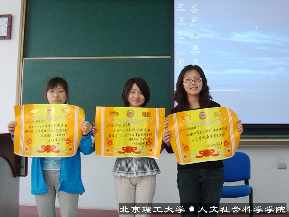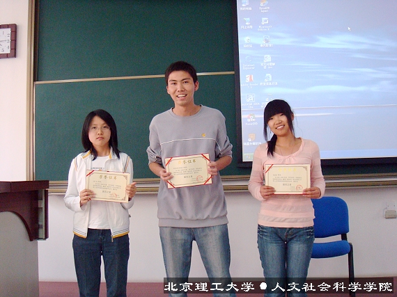 4月18日下午四点,人文学院2007级入党积极分子们在理学楼208教室进行了本学期的第二次党课学习。在党课正式开始前,07级学生会对日前举行的优秀团支部评优展示会的最后评选结果进行了颁奖。09210701班团支部获得了最佳团日活动,09220701班团支部获得了bat365在线平台官网登录优秀团支部,09310701班团支部获得了人文学院优秀新生团支部,09310702班团支部获得了优良学风团支部。姚书佳和萧沃莹珏同学获得了优秀新生团支书,吴拉尔斯、聂思聪和郭于玮同学获得了团员之星的荣誉称号。