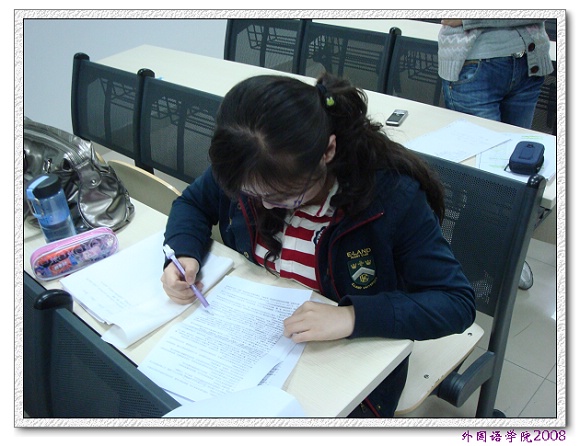 外国语学院2007级共有学生90余名,其中递交入党申请书的同学占学生总人数的一半,入党积极分子40余名。本次考试安排在学校太极操比赛之后,同学们都准时地来到教室,认真地参加考试,显示出积极分子追求进步、努力提高的决心。