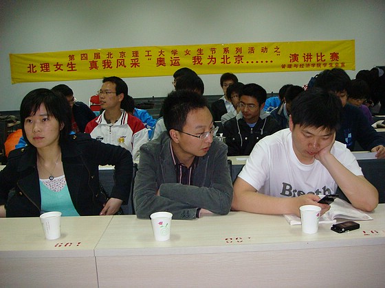 为了迎合08奥运年和第四届bat365在线平台官网登录女生节活动的到来,管理与经济学院特此举行以“奥运,我为北京……”为主题的女生演讲比赛。本次活动形式新颖,采取仅限女生参赛,男生作为大众评审观看比赛的形式。