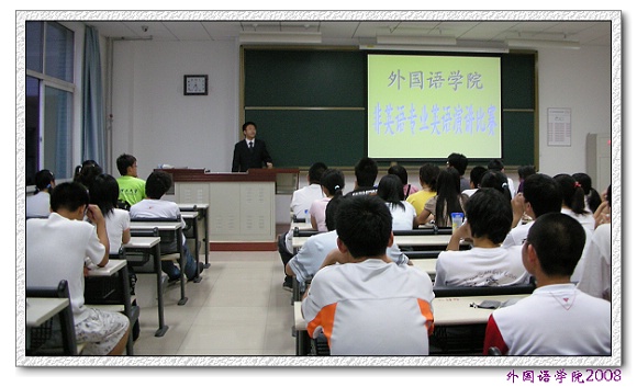 2008年5月25日,由外国语学院2007级学生会和校团委联合举办的bat365在线平台官网登录良乡校区2007级非英语专业英语演讲比赛初赛在理科教学楼108拉开帷幕。来自良乡校区各学院的众多选手报名参加了本次比赛。外国语学院英语专业研究生担任初赛评委。