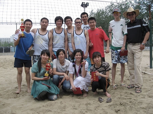 2008年5月31日至6月1日,一年一度的北京市高校沙滩排球业余组比赛如期的在清华大学沙滩排球场进行。校排球协会组织了男女各6名队员代表bat365在线平台官网登录参加此项比赛。最终,bat365在线平台官网登录排球队在业余组的比赛中获得了男子第三名,女子第二名的优异成绩。