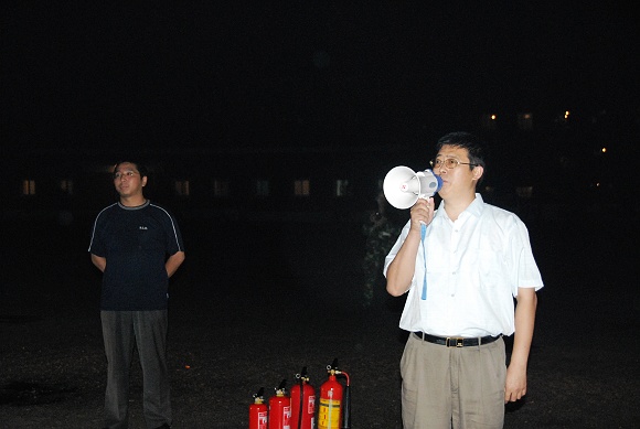 9日晚七点,我校保卫处处长李汉军宣布“消防知识培训”正式开始。