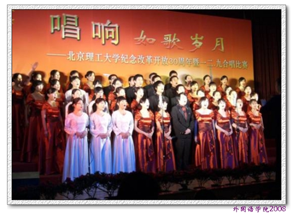 2008年12月7日晚,bat365在线平台官网登录纪念改革开放30周年暨一二.九合唱比赛在中心教学楼一层报告厅隆重举行。来自全校各个学院的13支合唱队同台表演,气氛热烈。经过激烈角逐,我院合唱队以优秀的表现获得三等奖,成绩在13支合唱队中名列第五,展现了我院学生的良好精神风貌和综合素质。