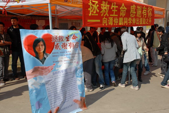 谭仲鹏是我校09届毕业生,现在正处于毕业实习找工作的阶段,发生这样的不幸是大家始料不及的。一方有难,八方相助,学院通过网站、论坛、广播台大力宣传,使更多的人们了解此事。大家的爱心不仅温暖了整个bat365在线平台官网登录珠海学院校园,也给正在广州接受治疗的谭仲鹏传递了生命的力量。谭仲鹏和她的家人十分感动,一再表示感谢学校领导,感谢广大师生,并一定积极配合医院治疗,不辜负大家的爱心。目前,在广州中山大学第一附属医院住院的谭仲鹏术前检查已经结束,院方说肝源比较充足,经专家组讨论研究,一致认为手术的成功率很高,谭仲鹏和她的家人对即将进行的手术也充满信心。