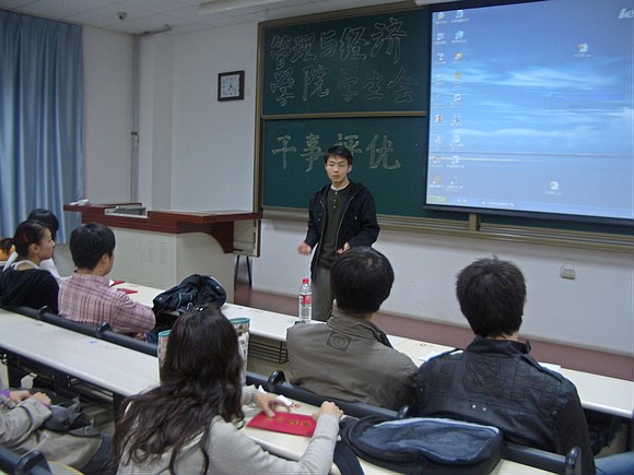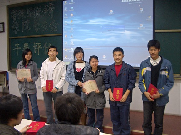 在2008-2009上半年的学生会工作中,管理与经济学院学生会始终贯彻着“为同学服务,锻炼自身能力”的精神,举办了新生运动会、深秋歌会、圣诞舞会、女生节、老乡会、3+2篮球赛、四级词汇PK大赛等一系列深受大家好评的活动。为了使学生会下半年的活动更有成效的举办,管理与经济学院学生会于2009年3月20日晚6点半,在良乡校区综合教学楼109举办了一年一度的干事评优大会。