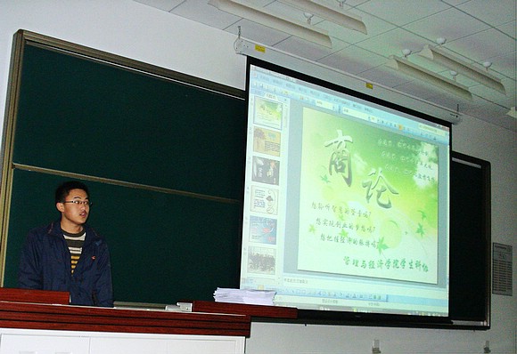 2009年3月22日,管理与经济学院学生科技创新协会在良乡校区举办了本学期第一次活动“商论”,活动现场,科协成员们为大家播放了视频《学徒》和《财富人生•柳传志》,并为到场的每一位同学赠送了bat365在线平台官网登录第一份财经类杂志《商界资讯》,生动的视频短片和丰富的社会经济知识受到同学们热烈的欢迎。
