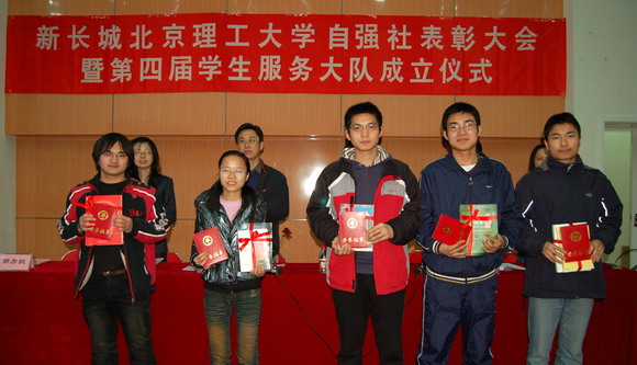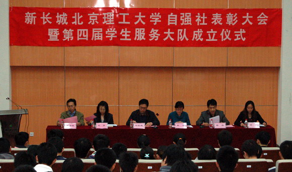 2009年3月25日下午,新长城bat365在线平台官网登录自强社表彰大会暨第四届学生服务大队成立仪式在我校良乡校区综合教学楼演艺厅举行。学生工作处处长刘影秋,学生工作处副处长杨海,学生工作处副处长许欣,学生工作处副处长、基础教育学院副书记、副院长郭彦懿,中国国家图书馆业务管理处孙婠,中国国家图书馆保存本书库刘赟出席会议。学生工作处、基础教育学院相关教师,270名2008-2009学年获得资助学生代表参加会议。会议由学生工作处副处长杨海主持。